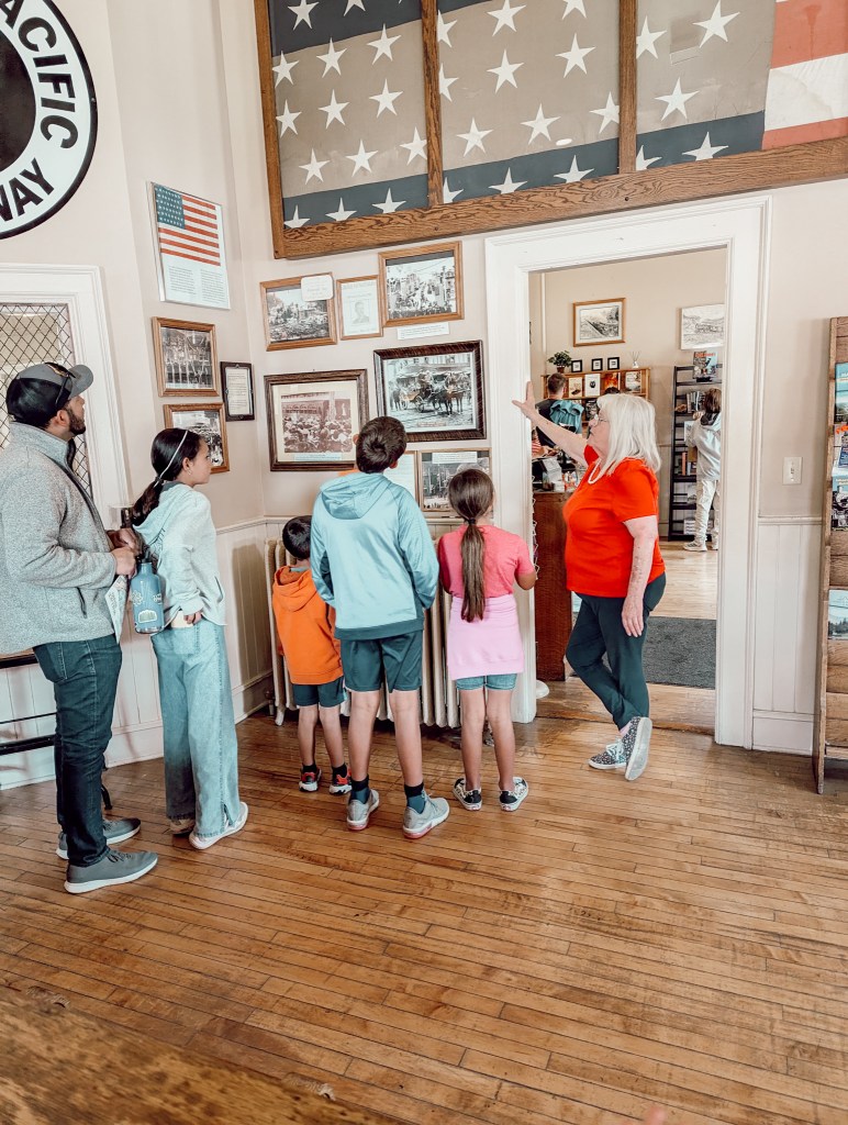 The three photos below are from the depot. The outside, the sweet lady working the front desk, and the cutest bathroom that has me inspired to work on my own. The tours in all the museums we visited are self guided. Although the lady at the train depot gave us quite the tour and even passed out brownies. She was wonderful. Upstairs in the depot are many hands on exhibits for the kids. Old phones, the bell, look and finds. The depot was definitely my favorite of the three and if you only picked one, I’d go there.