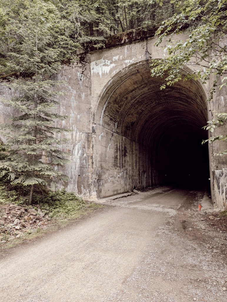Expect to get muddy! The first tunnel is wet! Water weeps in the walls of it, and the ground is dirt. As the day warms up and more people use the trail, it gets even muddier. The faster you go through that tunnel, the more the mud will flip up the back of you. One lady on her e-bike was completely covered in mud!! Head to toe. It gets a little slippery too, we had one kid who slipped right before exiting the tunnel and was covered in mud.