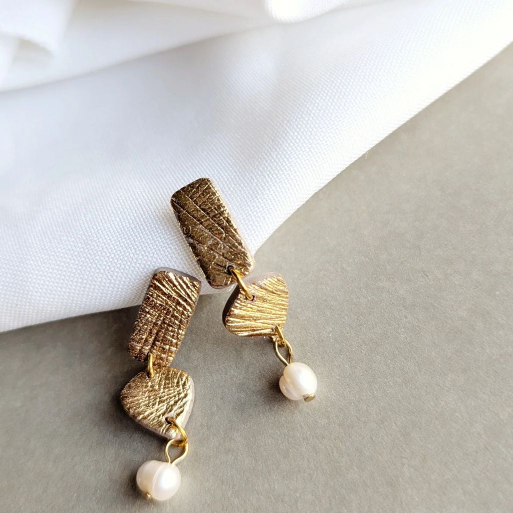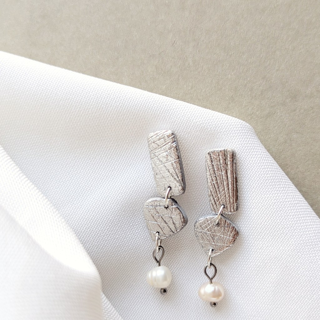 She is so pretty. The pearl drop is the perfect touch to go with the textured clay and metal finishes, giving the perfect balance between interesting and feminine.