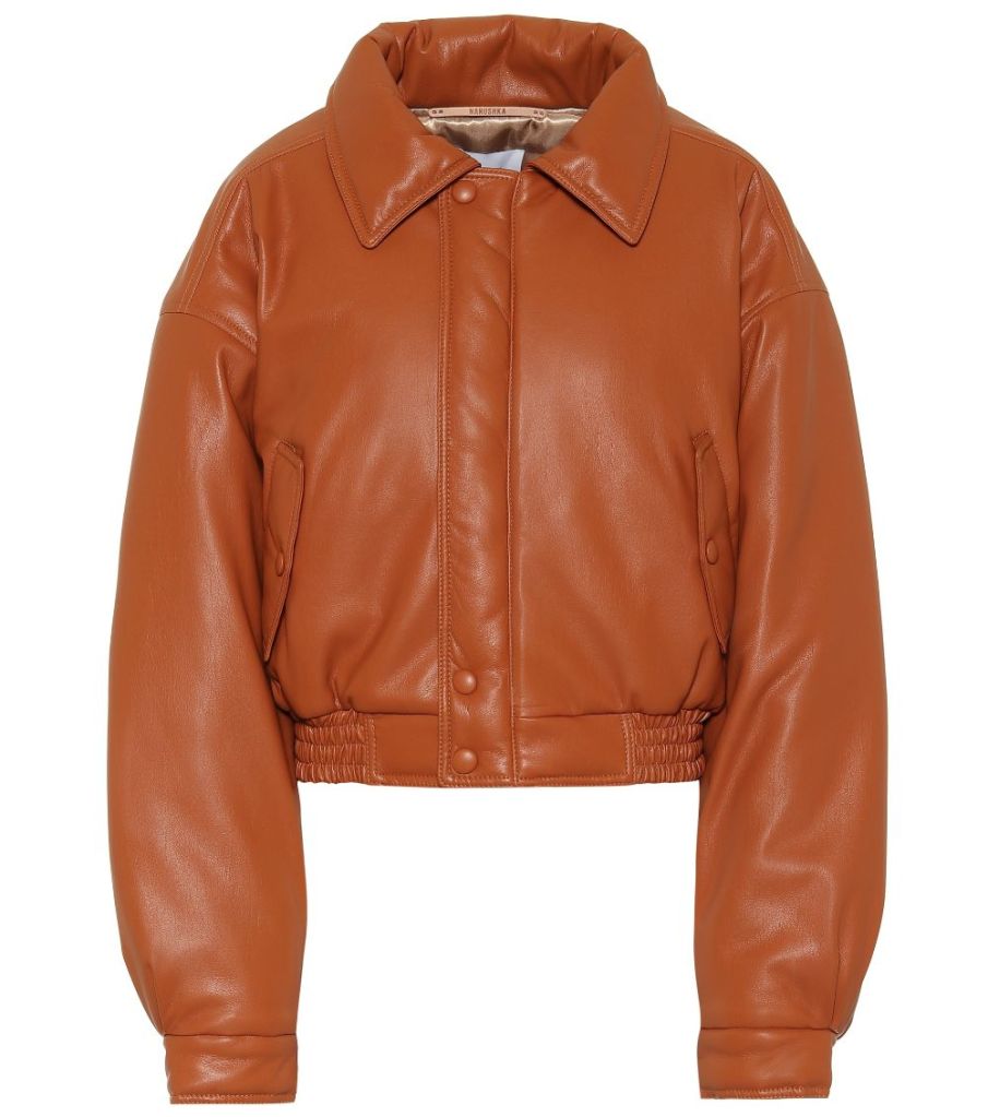 The slight print of the tights with the visual interest of the leather jacket is *chef’s kiss*! A classy, slightly edgy outfit is the perfect pair for the Carley earrings.